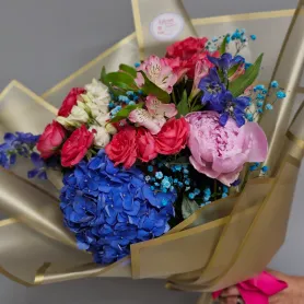 Букет с гортензией «Яркость лета»