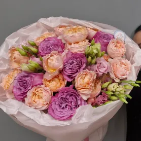 Купить букет из кустовых роз у нас в магазине- круглый букет такого плана в самом тренде сейчас