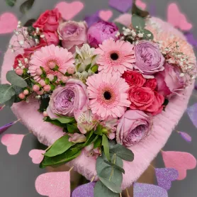 Сборный эксклюзивный букет в каркасе, выполненном в виде сердца с декором из множества сердечек, такой точно раскажет о Вашей любви 💕