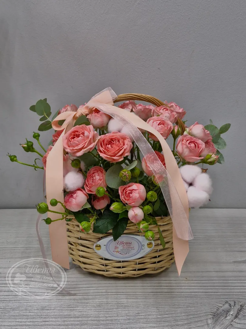 Подарите себе нежность и уют с букетом «Розовые грёзы», выполненным из изысканных кустовых роз, мягкого хлопка и свежего эвкалипта. Этот гармоничный ансамбль добавит романтики и свежести в любой дом или офис. Идеальный подарок для тех, кто ценит красоту и элегантность. Ощутите атмосферу спокойствия и вдохновения с каждым взглядом на этот уникальный букет.Его легко купить- просто позвоните или напишите нам