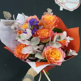 Яркий букет, выполненный в оранжевом цвете, поднимет настроение дорогому Вам человеку!