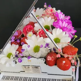 Рояль, выполенный из качественного материала, украшен цветами, зеленью и клубникой. Также эффектно выглядит и черный рояль. Есть и другие музыкальные инструменты. В городе в наличии только у нас