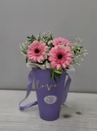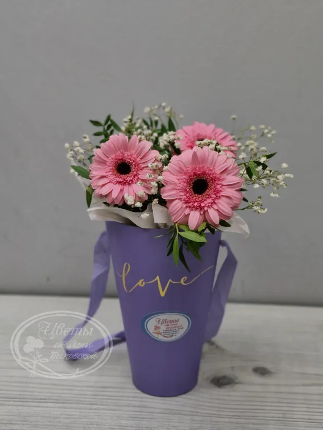 Подарите яркое настроение с нашей композицией гербер в стильной вазе-сумочке. В состав букета входят красивые гермини, изящная гипсофила и нежные писташи, создающие гармоничный и свежий образ. Такой дизайн отлично подойдет для украшения интерьера или приятного подарка. Вазочка-сумочка добавляет особого шарма и удобно для использования. Цветы аккуратно собраны и долго сохраняют свежесть. Это оригинальное решение для любого торжества или особого случая.