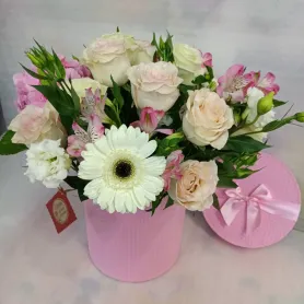 Коробочка сборная из роз, альстромерий,гербер, эустом