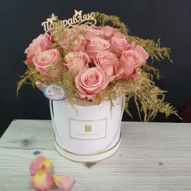 Розовая композиция в шляпной коробке для самых любимых Вам людей