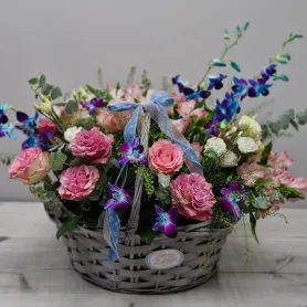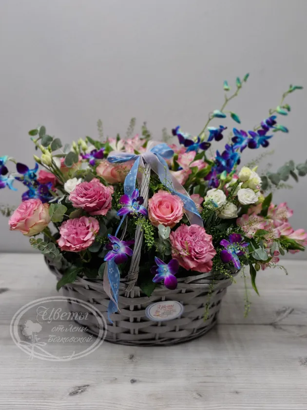 Купить роскошную большую корзину из сборных цветов с дендробиумом можно у нвс- просто позвоните или напишите наи