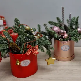 Предлагаем композиции из ароматных веток нобилиса и декора. Может быть выполнена и в другой цветовой гамме, по Вашему желанию