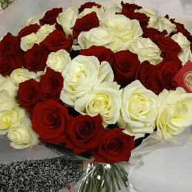Букет из роз «Красный - белый бархат»