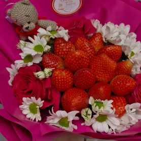 Клубничный букет с игрушкой