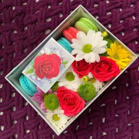 Композиция из макарунс и цветов
